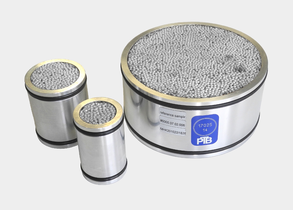 - zylinderförmige Probekörper mit einem Durchmesser von 100 mm (ehemals gefordert nach DIN EN 29053), 40 mm und 30 mm sowie Schüttungen, Stoffe und Bespannungen
