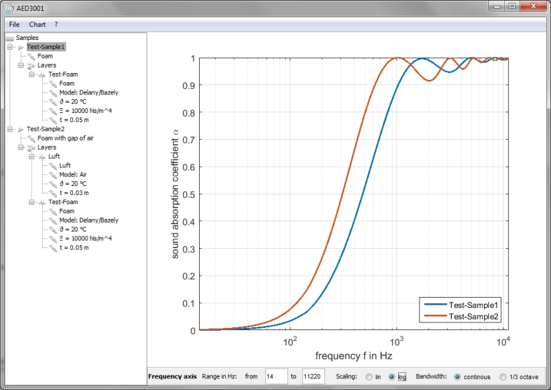 Ein entscheidender Vorteil der Absorber-Software gegenüber den Messungen im Hallraum/im Impedanzrohr ist, dass verschiedene Produkte bezüglich ihrer schallabsorbierenden Eigenschaften für eine definierte Dicke direkt miteinander vergleichen werden können, auch wenn die produktspezifische Dicke verschieden ist.
